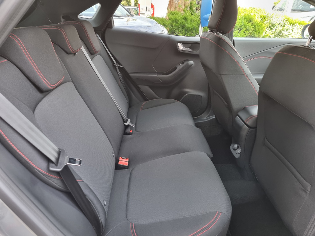 - Fekete szövetkárpit piros varrással